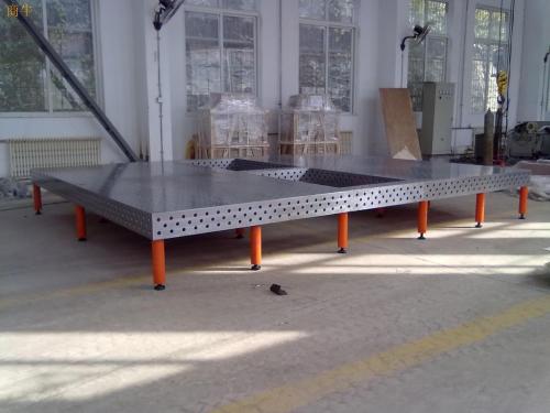 三維柔性焊接平臺(tái)材質(zhì):鑄造件(HT300),進(jìn)行整體退火熱處理消除內(nèi)應(yīng)力后放置三到六個(gè)月自然時(shí)效處理。