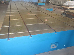 重型鑄鐵平臺按GB/4986-85的標準制造,產(chǎn)品制成筋板式和箱體式,工作有長方形,材料HT200,工作面采用刮研工藝,工作面上可加V型、T型、U型槽和圓孔、長孔等。平板是用于工件檢測或劃線的平面基準器具。平板安裝應調(diào)至水平、負荷均分布于各支點上,環(huán)境溫度(20±5℃)使用時應避免振動。