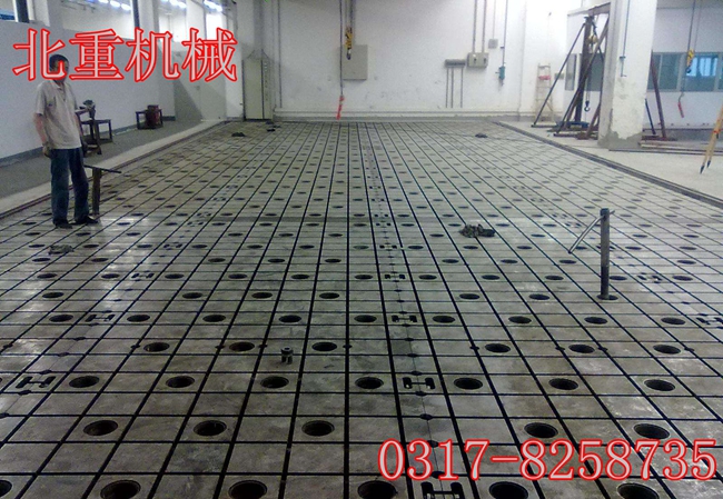 鐵地板T型槽平臺、T型槽工作臺、T型槽平板安裝時按地腳螺栓孔的位置放入相應(yīng)的機床調(diào)整墊鐵,10~15mm可調(diào),地腳螺栓孔配蓋板。